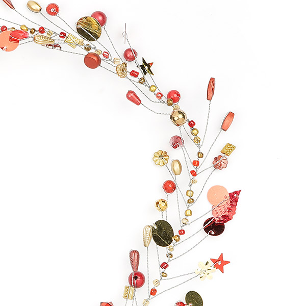 Material: Draht, Glas- und Kunststoffperlen, Chiffonband