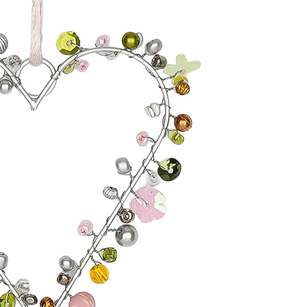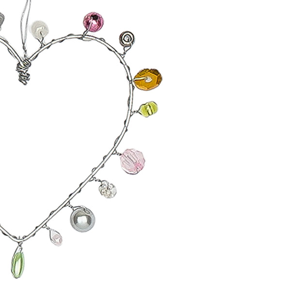 Fantasievolle Drahtdekoration mit Perlen, hergestellt von unserem Partner Almeerath aus Ägypten. Die aus Draht geformten Dekorationen werden aufwändig von Hand mit Perlen und kleinen Anhängern aus Glas und Kunststoff verziert. Eine fröhlich bunte Deko zum Aufhängen an Wand, Fenster oder Haustür.