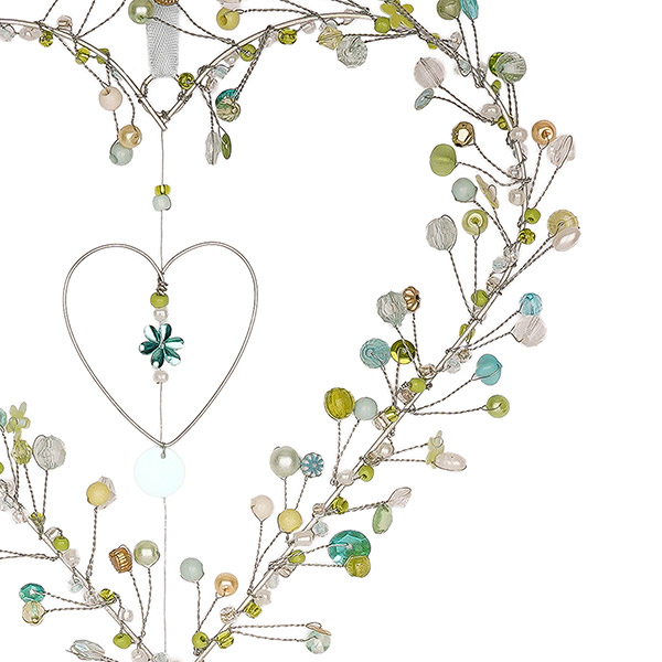 Fantasievolle Drahtdekoration mit Perlen, hergestellt von unserem Partner Almeerath aus Ägypten. Die aus Draht geformten Dekorationen werden aufwändig von Hand mit Perlen und kleinen Anhängern aus Glas und Kunststoff verziert. Eine fröhlich bunte Deko zum Aufhängen an Wand, Fenster oder Haustür.