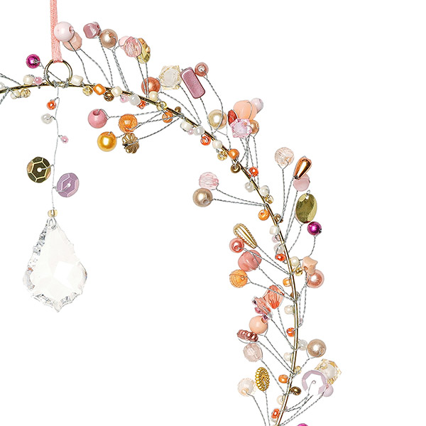 Material: Draht, Glas- und Kunststoffperlen, Chiffonband