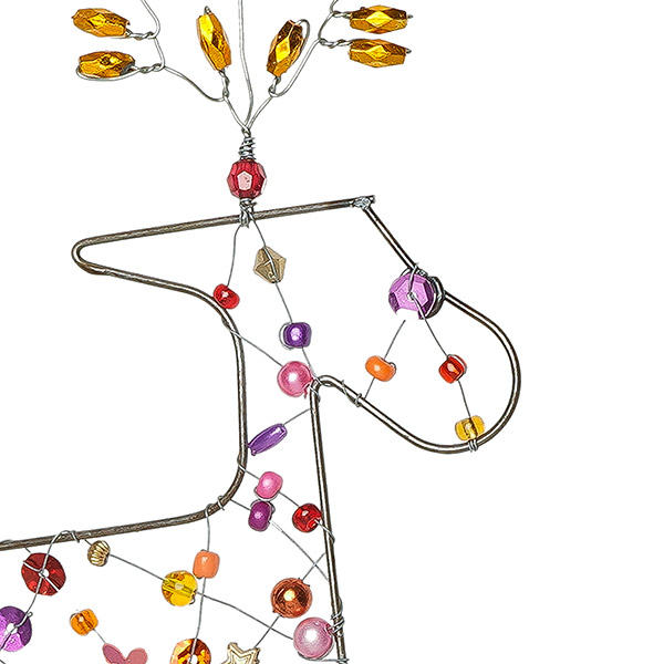 Fantasievolle, festliche Dekoration für die Advents- und Weihnachtszeit von unserem Partner Almeerath aus Ägypten. Die aus Draht geformten Sterne, Engel, Rentiere usw. werden aufwendig von Hand mit Perlen und kleinen Anhängern aus Glas und Kunststoff verziert. Die zierlichen Kunstwerke sind als Fenster-, Raumdekoration oder zum Verzieren von Geschenken geeignet.