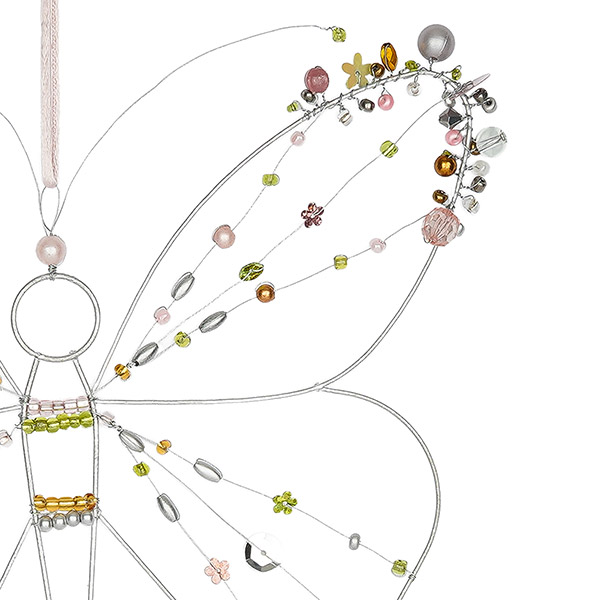 Fantasievolle Drahtdekoration mit Perlen, hergestellt von unserem Partner Almeerath aus Ägypten. Die aus Draht geformten Dekorationen werden aufwändig von Hand mit Perlen und kleinen Anhängern aus Glas und Kunststoff verziert. Eine fröhlich bunte Deko zum Aufhängen an Wand, Fenster oder Haustür.