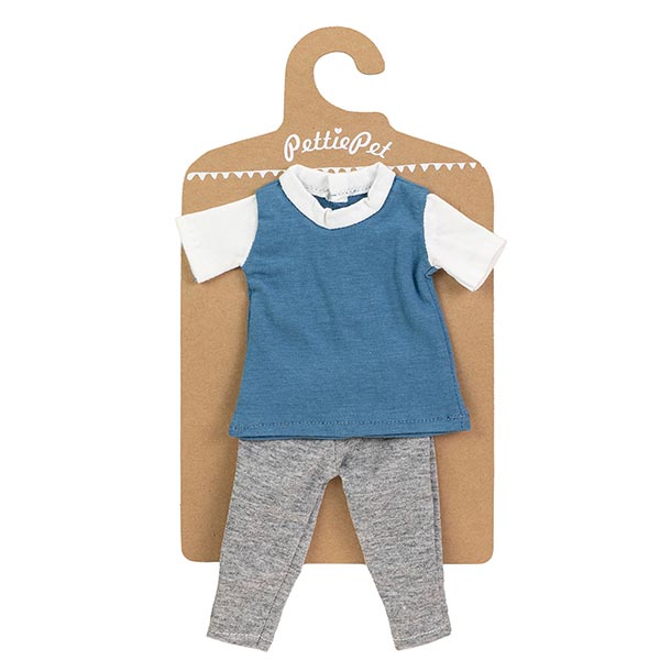 Kleidungsset bestehend aus zwei unifarbenen Jersey-Leggings zum vielseitigen Kombinieren von Kleidungsstücken für die PettiePet Anziehpuppen, passend für alle Charaktere.