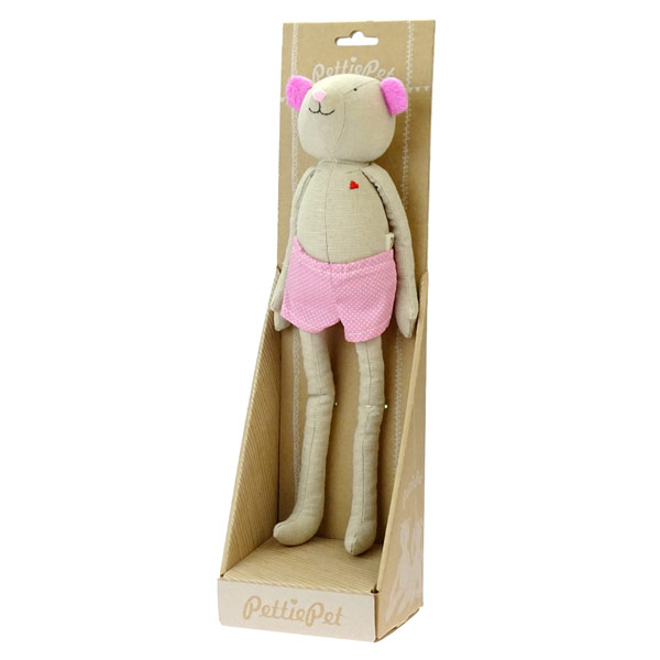 Unsere kleine Stoffbärin Lotta mit den rosa Ohren ist eine treue Begleiterin zum Kuscheln und Spielen. Der besondere Clou: Für Kinder ab 3 Jahren gibt es eine Vielzahl an Kleidersets, die Lotta und allen anderen PettiePets passen und sogar miteinander kombiniert werden können. Ob als Bäckerin oder im Pünktchenkleid, das Ein-, An- und Verkleiden macht nicht nur uns Spaß, sondern fördert auch die kindliche Motorik und Fantasie. Unsere PettiePets entstehen in liebevoller Handarbeit in Chiang Mai, Thailand.