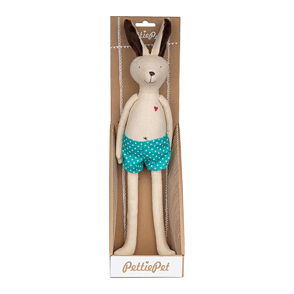 Unser kleiner Stoffhase Anton mit den braunen Ohren ist ein treuer Begleiter zum Kuscheln und Spielen. Der besondere Clou: Für Kinder ab 3 Jahren gibt es eine Vielzahl an Kleidersets, die Anton und allen anderen PettiePets passen und sogar miteinander kombiniert werden können. Ob als Fußballspieler oder lässig gekleidet mit blauer Freizeithose, das Ein-, An- und Verkleiden macht nicht nur uns Spaß, sondern fördert auch die kindliche Motorik und Fantasie. Unsere PettiePets entstehen in liebevoller Handarbeit in Chiang Mai, Thailand.