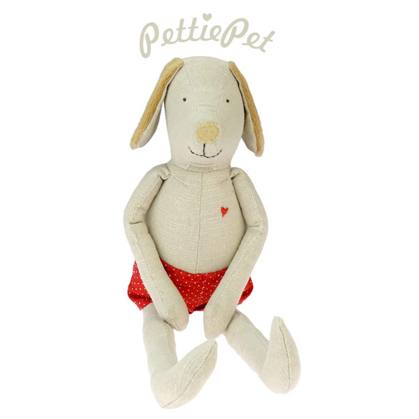 Unsere kleine Stoffhündin Paula mit den beigen Ohren ist eine treue Begleiterin zum Kuscheln und Spielen. Der besondere Clou: Für Kinder ab 3 Jahren gibt es eine Vielzahl an Kleidersets, die Paula und allen anderen PettiePets passen und sogar miteinander kombiniert werden können. Ob im Blumenkleid oder als Meerjungfrau, das Ein-, An- und Verkleiden macht nicht nur uns Spaß, sondern fördert auch die kindliche Motorik und Fantasie. Unsere PettiePets entstehen in liebevoller Handarbeit in Chiang Mai, Thailand.