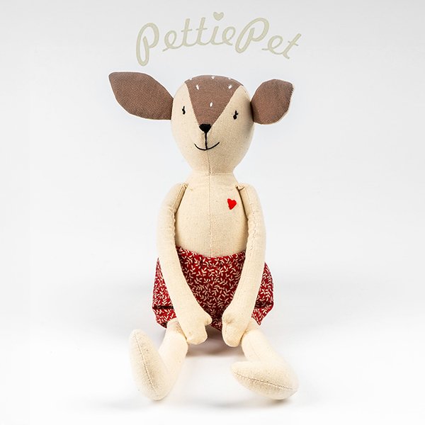Unsere kleine neugierige Rehdame Mila ist ein treuer Begleiter zum Kuscheln und Spielen. Der besondere Clou: Für Kinder ab 3 Jahren gibt es eine Vielzahl an Kleidersets, die Mila und allen anderen PettiePets passen und sogar miteinander kombiniert werden können. Ob als Matrose oder Superheld, das Ein-, An- und Verkleiden macht nicht nur uns Spaß, sondern fördert auch die kindliche Motorik und Fantasie. Unsere PettiePets entstehen in liebevoller Handarbeit in Chiang Mai, Thailand.