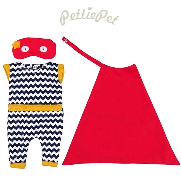 Mal eben die Welt retten? Kein Problem für unseren Superhasen, wenn er dafür nachts mit im Bett kuscheln darf. Auch ein echter Superheld muss sich mal ausruhen und das geht am besten im gestreiften Kuschel-Pyjama. Für die PettiePets gibt es eine Vielzahl an weiteren Kleidersets, die allen Tieren passen und miteinander kombiniert werden können. Das Ein-, An- und Verkleiden macht nicht nur uns Spaß, sondern fördert auch die kindliche Motorik und Fantasie. Unsere Kuscheltiere entstehen in liebevoller Handarbeit in Chiang Mai, Thailand. Lieferung: Kuscheltier Hase mit braunen Ohren, mit Superheldenanzug, Umhang und Maske. Material: Stoffpuppe aus Baumwollstoff mit Polyester Füllwatte. Kleiderset aus Mischgewebe. Maße: ca. 35 cm groß HINWEIS: Dieser Artikel ist nicht geeignet für Kinder unter 3 Jahren aufgrund verschluckbarer Kleinteile. PFLEGE: Handwäsche bis 30°C, danach gut trocknen lassen.