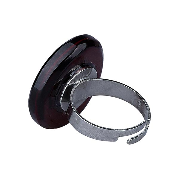 Material: Capizmuschel (Placuna placenta) mit Kunstharz überzogen; verstellbarer/offener Ring aus Edelstahl, nickelfrei