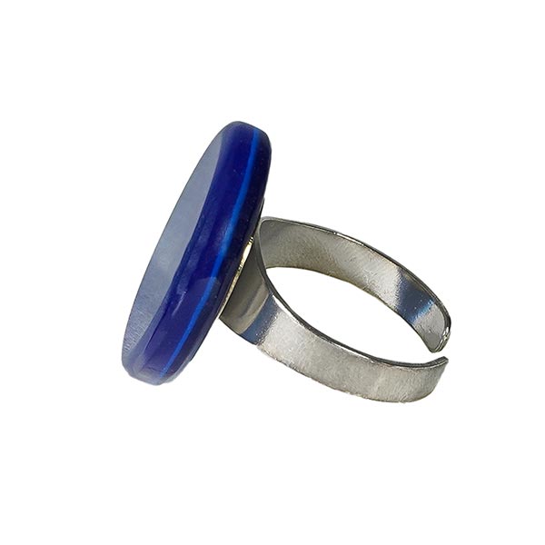 Material: Capizmuschel (Placuna placenta) mit Kunstharz überzogen; verstellbarer/offener Ring aus Edelstahl, nickelfrei