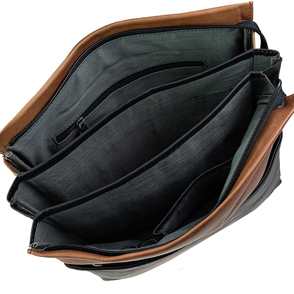 Innen: 3 separate Hauptfächer für Din A4 Dokumente, über einen zentralen Reißverschluss erreichbar.