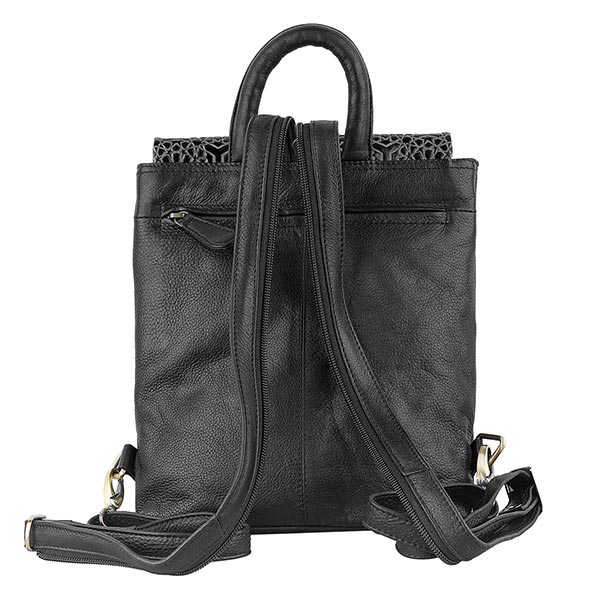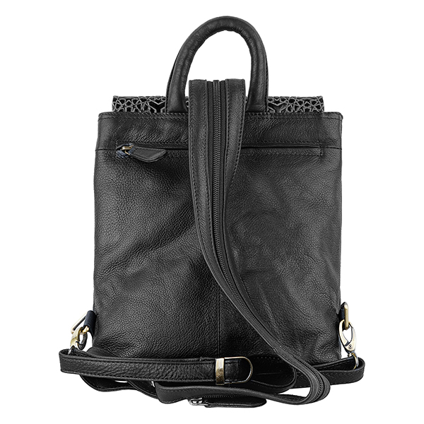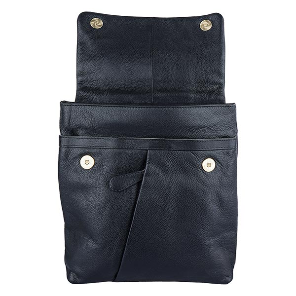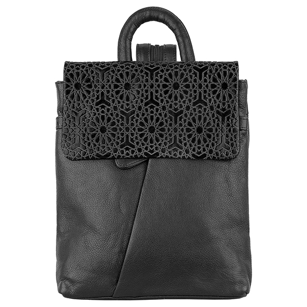 Material: Pflanzlich gegerbtes schwarzes Rindsleder kombiniert mit Shanti-Ziegenleder