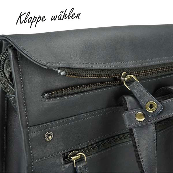 Das Grundmodell kommt schlicht ohne Klappe. Diese kann selbst gewählt werden. Unsere große Auswahl an Wechselklappen sorgt für das modische Extra. Ob im Patchwork Look, gestanzt, geprägt oder farbig abgesetzt, jede Wechselklappe kann mit einem Reißverschluss einfach abgenommen und ausgetauscht werden.
