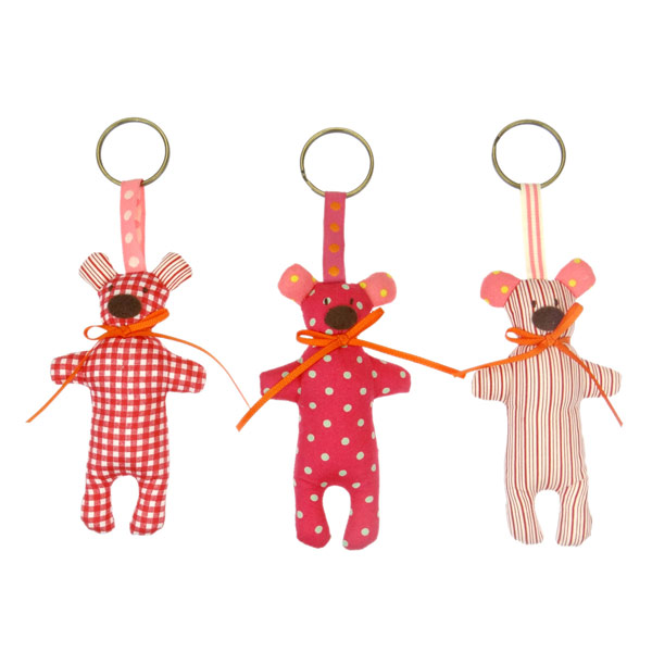 Das kleine Bärchen dient als Schmuck oder Talismann am Rucksack. Es wird mit einem Metallring mit Scharnier am Tragegurt befestigt.Maße: 13x7cm (H/B). Liebevolle Handarbeit aus Chiangmai. Außenmaterial Baumwolle, Füllung aus Polyester. Wir liefern in drei verschiedenen Mustern: Pünktchen, Streifen und Karos.