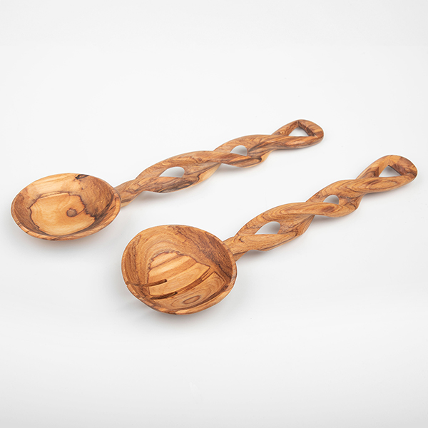 Dieses Salatbesteck mit seinem kunstvoll geschnitzten Griff macht Eindruck am Salatbuffet und liegt wunderbar leicht in der Hand.