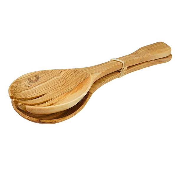 Ein Hingucker am Salat Buffet: Dieses kunstvoll geschnitzte Salatbesteck, bestehend aus zwei formschönen Löffeln, überzeugt durch seinen natürlichen Charme und den perfekten Griff.