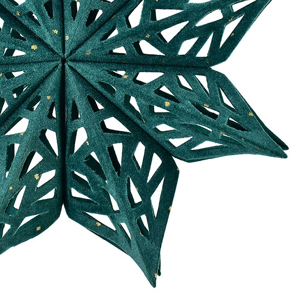 Faltstern aus Papier in edler Samtoptik. Ein wunderschöner Raumschmuck der Weihnachtsstimmung ins Haus bringt. Er eignet sich besonders als Hingucker in einem winterlichen Fenster.