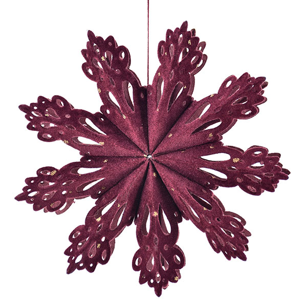 Faltstern aus Papier in edler Samtoptik. Ein wunderschöner Raumschmuck der Weihnachtsstimmung ins Haus bringt. Er eignet sich besonders als Hingucker in einem winterlichen Fenster.