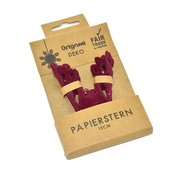 Faltstern aus Papier in edler Samtoptik. Ein wunderschöner Raumschmuck der Weihnachtsstimmung ins Haus bringt. Er eignet sich besonders als Hingucker in einem winterlichen Fenster.