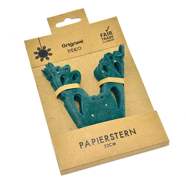 Extra: Der Faltstern wird in einem Verpackungskarton geliefert und kann so bis zum nächsten Einsatz sicher verstaut werden.