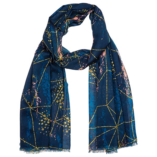 Großzügiger Schal in einem eleganten Design. Das anschmiegsame Material ist leicht, luftig und zeigt einen zarten Glanz.