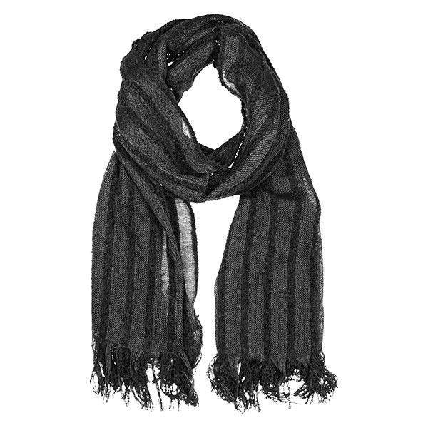 Wärmender, anschmiegsamer Schal aus edler Baby Alpakawolle in dezent-dunklem Streifendesign.