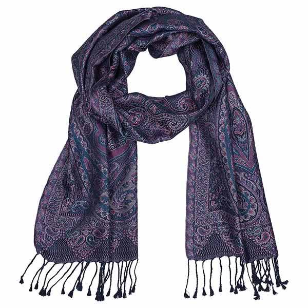 Zart schimmernder Seidenschal mit wunderschön changierendem Farbspiel auf beiden Seiten und gewebten Paisleymuster.