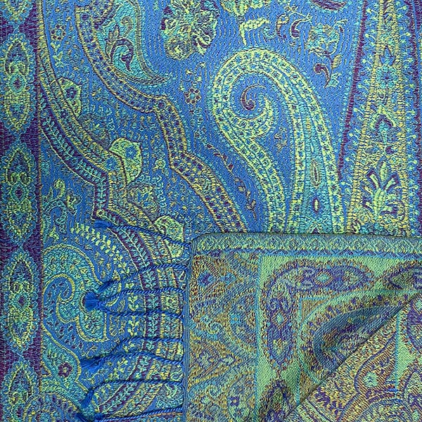 Eleganter hochwertiger Schal aus reiner Seide. Die Farben des gewebten Paisley Musters changieren im Licht und sind so ein echter Hingucker. Ein vielseitiges edles Accessoire für den Alltag und besondere Anlässe, das jedem Outfit das gewisse Etwas verleiht.