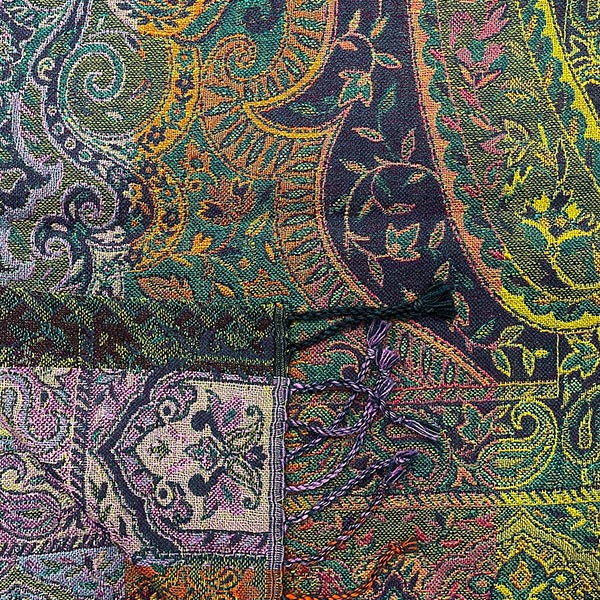 Ein klassischer Paisley-Wollschal. Der Webschal sorgt für ein angenehmes und wärmendes Tragegefühl und lässt sich durch das interessante Farbspiel wendbar tragen.