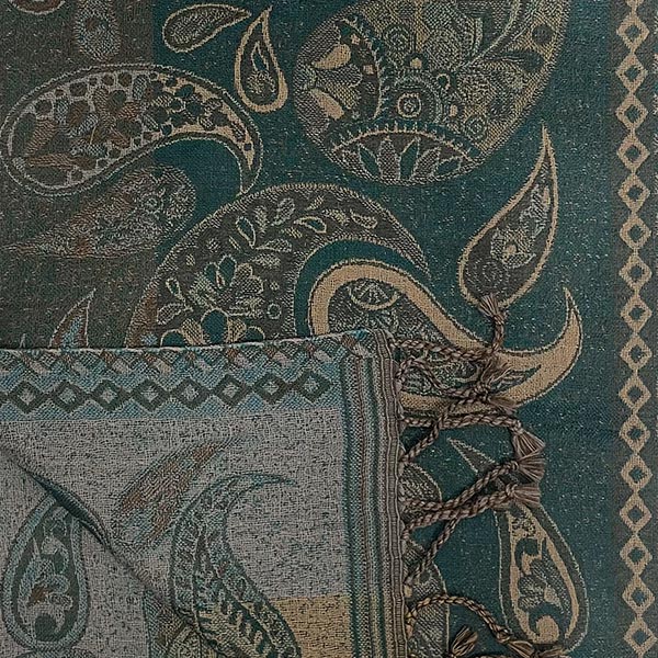 Ein klassischer Paisley-Wollschal. Der Webschal sorgt für ein angenehmes und wärmendes Tragegefühl und lässt sich durch das interessante Farbspiel wendbar tragen.