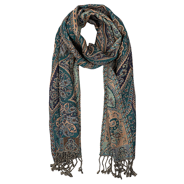 Ein klassischer Paisley-Wollschal. Der Webschal sorgt für ein angenehmes und wärmendes Tragegefühl und lässt sich durch das interessante Farbspiel wendbar tragen.