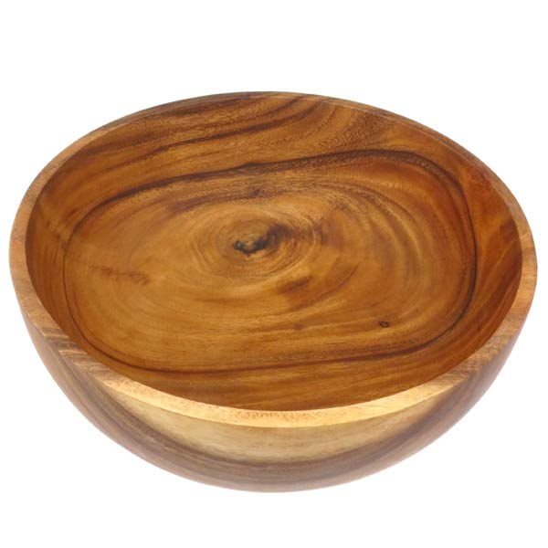 Diese prachtvolle Salatschale aus Naturholz ist der Mittelpunkt auf jedem Tisch. Zum Anrichten von Salaten oder Servieren von Speisen bestens geeignet..Maße ca. 30cm/ 12cmFarbe: Naturholz mit hellen und dunklen Partien, wie gewachsenMaterial: Acaciaholz (Samanea Saman, Nutzholz, Alleebaum), Herkunft: LuzonHinweis: Maserung und Farbton des gelieferten Artikels können von der Abbildung abweichenGebrauch: Versiegelung lebensmittelecht (Lack auf Nitrocellulosebasis), geeignet für KaltspeisenPflege: von Hand abwaschen und sofort trockenreiben. Bei Bedarf mit ein paar Tropfen Salatöl pflegen.