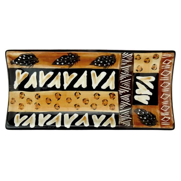 Von Hand gearbeitete flacher Servierteller. Maß: Länge ca.26cm, Breite ca.12cm. Unterglasur Design: handbemalt. Es gibt mehrere Varianten innerhalb einer Farbfamilie, gelieferter Artikel kann von der Abbildung abweichen.Material: hochwertiges Steinzeug aus weißem Ton, Glasurbrand bei 1.200°CEigenschaften: mikrowellengeeignet, für Lebensmittel geeignet.Empfehlung: handgemachte Keramik ist stoßempfindlicher als Industriekeramik. Die Standfläche der Keramik ist nicht glasiert. Wir empfehlen die schonende Reinigung durch Handabwasch.