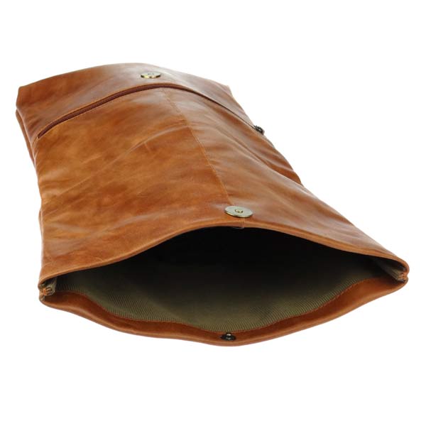Diese Ledertasche gewinnt Frauenherzen durch ihre Schlichtheit. Sie kann zu jeder Gelegenheit getragen werden. Braucht Frau einmal mehr Platz, dann lässt sich das Volumen durch Ausfalten der Klappe fast verdoppeln.