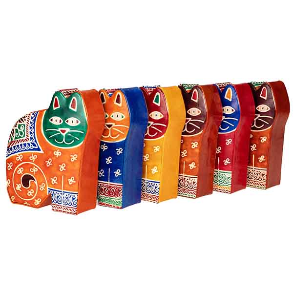 Süße Katzen-Spardose mit einem Schlitz am Rücken für den Münzeinwurf. Öffnen lässt sie sich einfach mit einer Bodenlasche die durch einen Druckknopf wiederverschließbar ist.