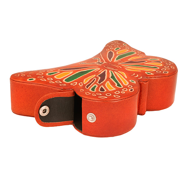 Das Besondere ist die Fertigung in traditioneller Shantiniketani-Technik. Das Leder wird geprägt und anschließend von erfahrenen Handwerkerinnen von Hand koloriert. Diese Technik wurde in den 1930er Indien von Rabindranath Tagore (Schriftsteller und Nobelpreisträger) in Westbengalen eingeführt, um neue Einkommensmöglichkeiten im Handwerk zu schaffen.