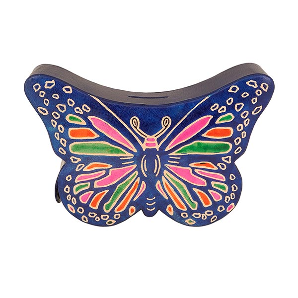 Diese süße Spardose in Form eines Schmetterlings ist nicht nur gut zum Sparen, sondern sieht auch noch toll in der Fensterbank aus. Sie besitzt oben einen Münzschlitz und am Boden eine Öffnung mit Druckknopf zum Leeren der Dose.