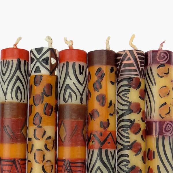 Fairtrade Künstlerkerze aus der südafrikanischen Manufaktur von KAPULA CANDLES. Jede handbemalte Kerze ist ein kleines Unikat, liebevoll und mit vielen Details gearbeitet, in Schutzfolie verpackt. Maß:2,2x12cmMaterial: hochwertiges ParaffinwachsBrenndauer: ca. 6 StundenDesign/ Farbe: vielfältige Designs, inspiriert von der afrikanischen Tierwelt , gelieferte Artikel können von der Abbildung abweichenSicherheits- und Pflegehinweis: Brennende Kerzen niemals in der Nähe von leicht entflammbaren Gegenständen aufstellen. Zugluft vermeiden, nicht unbeobachtet brennen lassen, nicht in Reichweite von Kindern und Tieren aufstellen. Kerze senkrecht und sicher aufstellen.Docht regelmäßig einkürzen (ca. 10-15mm) um ein Rußen zu vermeiden.