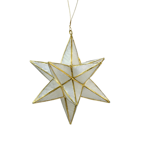 Dieser prachtvolle Weihnachtsstern aus zarter durchscheinender Capiz Muschel verschönert jedes Weihnachtsfenster. Der Stern hat einen abklappbaren Arm, der den Zugang ins Innere erlaubt.