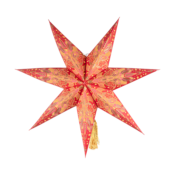 Papierstern mit einem wunderbar üppigen Dekor. Ein auffälliger Raumschmuck mit orientalischem Flair. Dekorieren Sie den Stern im weihnachtlichen Fenster oder hängend unter der Zimmerdecke.