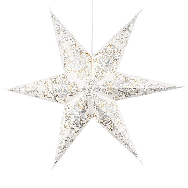 Papierstern mit einem wunderbar üppigen Dekor. Ein auffälliger Raumschmuck mit orientalischem Flair. Dekorieren Sie den Stern im weihnachtlichen Fenster oder hängend unter der Zimmerdecke.