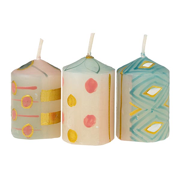 Fairtrade Künstlerkerze aus der südafrikanischen Manufaktur von KAPULA CANDLES. Von Hand mit Wachs bemalt. Jede Kerze ist ein kleines Unikat, liebevoll und mit vielen Details gearbeitet, in Schutzfolie verpackt.