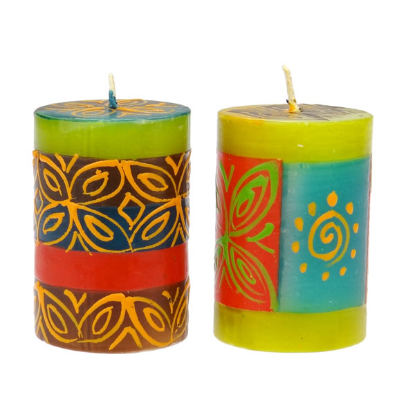 Fairtrade Künstlerkerze aus der südafrikanischen Manufaktur von KAPULA CANDLES. Jede handbemalte Kerze ist ein kleines Unikat, liebevoll und mit vielen Details gearbeitet, in Schutzfolie verpackt. Maß: ca. 4,5x7cmMaterial: hochwertiges ParaffinwachsBrenndauer:ca. 17 StundenDesign/ Farbe: vielfältige bunte Designs, gelieferte Artikel können in Farbgebung und Design von der Abbildung abweichenSicherheits- und Pflegehinweis: Brennende Kerzen niemals in der Nähe von leicht entflammbaren Gegenständen aufstellen. Zugluft vermeiden, nicht unbeobachtet brennen lassen, nicht in Reichweite von Kindern und Tieren aufstellen. Kerze senkrecht und sicher aufstellen.Docht regelmäßig einkürzen (ca. 10-15mm) um ein Rußen zu vermeiden.Beim erstmaligen Anzünden von Stumpenkerzen: Kerze so lange brennen lassen, bis der Kerzenteller voll ausgebrannt ist (ca. 2-3 Stunden). So brennt die Kerze auch später nicht hohl.