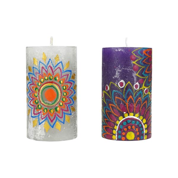 Fairtrade Künstlerkerze aus der südafrikanischen Manufaktur von KAPULA CANDLES. Jede handbemalte Kerze ist ein kleines Unikat, liebevoll und mit vielen Details gearbeitet, in Schutzfolie verpackt. Maß: 6x10cmMaterial: hochwertiges ParaffinwachsBrenndauer: ca. 35 StundenDesign/ Farbe: verschiedene Blumenmuster in exotischem FarbspielPrivatkunden können bitte ihren Farbwunsch angeben.Sicherheits- und Pflegehinweis: Brennende Kerzen niemals in der Nähe von leicht entflammbaren Gegenständen aufstellen. Zugluft vermeiden, nicht unbeobachtet brennen lassen, nicht in Reichweite von Kindern und Tieren aufstellen. Kerze senkrecht und sicher aufstellen.Docht regelmäßig einkürzen (ca. 10-15mm) um ein Rußen zu vermeiden.