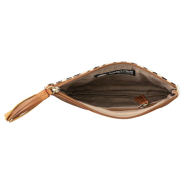 Hübsche flache Clutch mit auffälligem Felldesign und Lederquaste. So individuell wie unsere Lederlinie IndiWIEDUella, in die sie sich wunderbar einfügt.