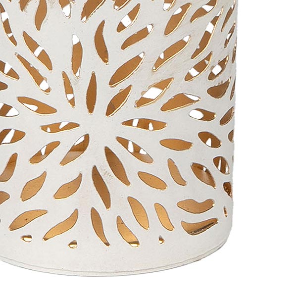 Ob für eine kuschelig warme Atmosphäre im Haus oder an lauen Sommernächten als romantische Lichtquelle für Balkon und Terrasse. Zauberhafte Lichtwirkung und Farbspiel durch das filigran durchbrochene Flammendekor im Metall, das in einem Ätzverfahren herausgearbeitet wird.