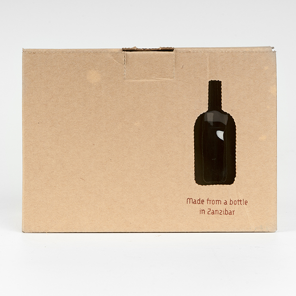 Für das Trinken mit Stil und gutem Gewissen: Zwei Trinkgläser im Geschenkkarton aus Weinflaschen mit sorgfältig geschliffenem Rand, handgefertigt auf der Insel Sansibar, Tansania.
