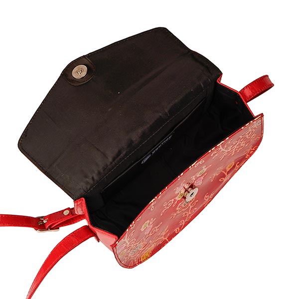 Eine rote Tasche mit WOW Effekt: Diese schicke, einfache Handtasche wird aus geprägtem, aufwändig von Hand bemalten Ziegenleder hergestellt.