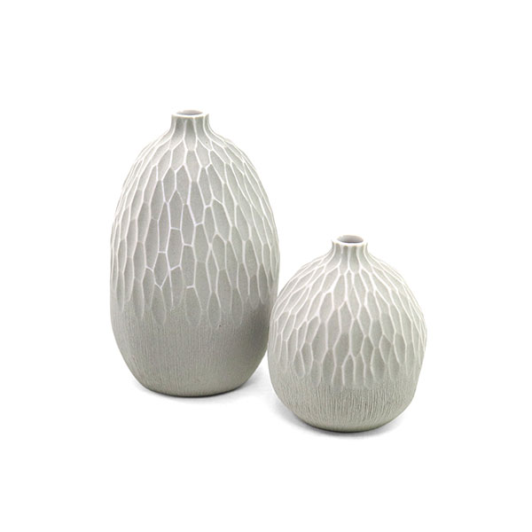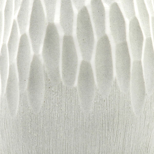 Ein besonderes Detail ist das von Hand eingedrückte Muster, das jeder Vase ihre ganz eigene Struktur und Tiefe verleiht.