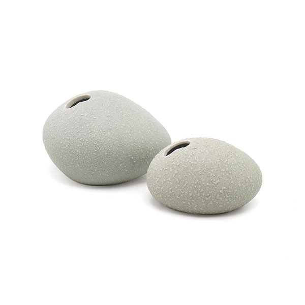 Diese kleine Keramikvase in Form eines geschliffenen Kieselsteins bringt die Natur direkt in dein Zuhause. Jedes Stück wird in liebevoller Handarbeit gefertigt. Jede Vase ist ein echtes Unikat.